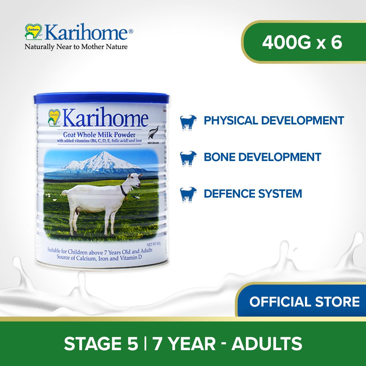 [Bundle of 6] Karihome Goat Whole Milk Powder For Stage 5 400g (7yr above and adults)