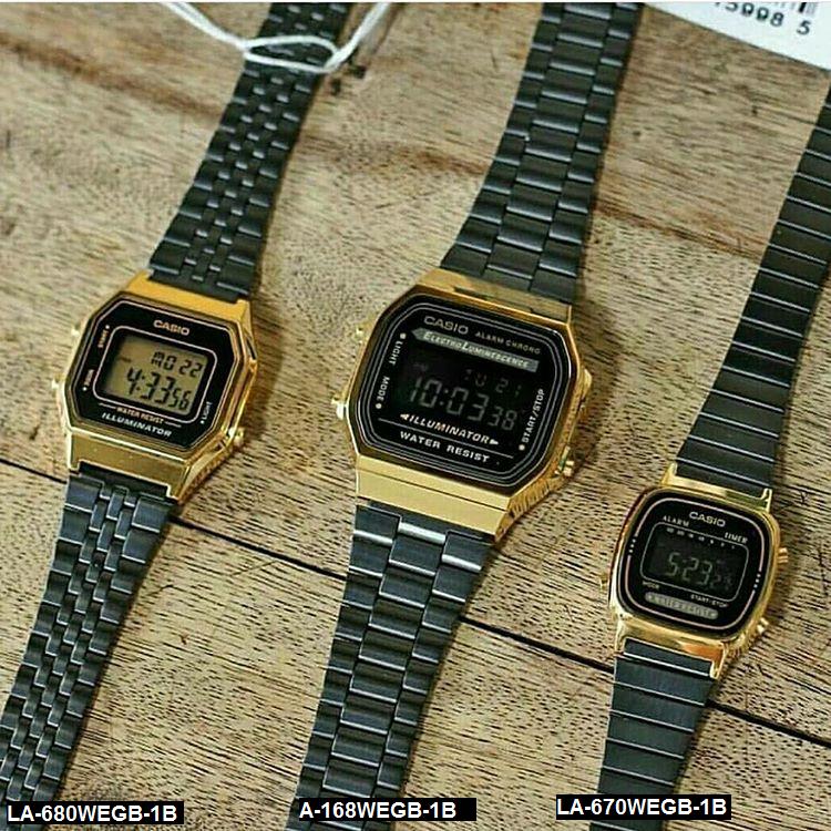 [Vinstore] Casio A168 Adjustable Black IP Stainless Steel Gold Tone Digital Quartz Men Women Watch A168WEGB-1B A168WEGB-1BDF A168WEGB-1 A-168WEGB-1B