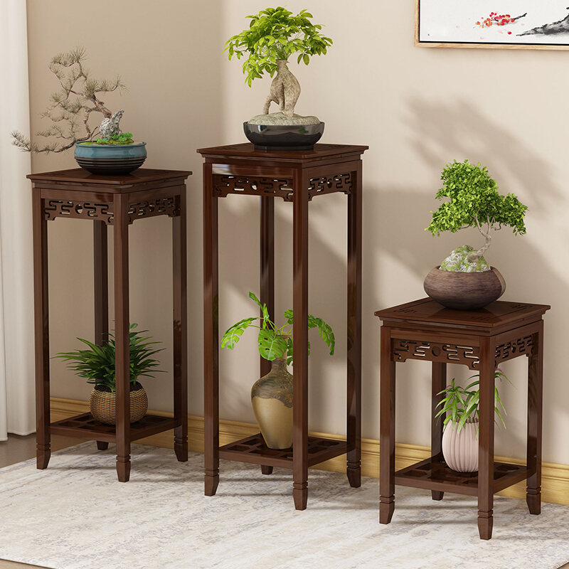 Flower Pot Stand Living Room Floor-Standing Indoor Chinese Flower Stand Storage Rack Balcony Solid Wood Flower Stand Antique Flower Stand