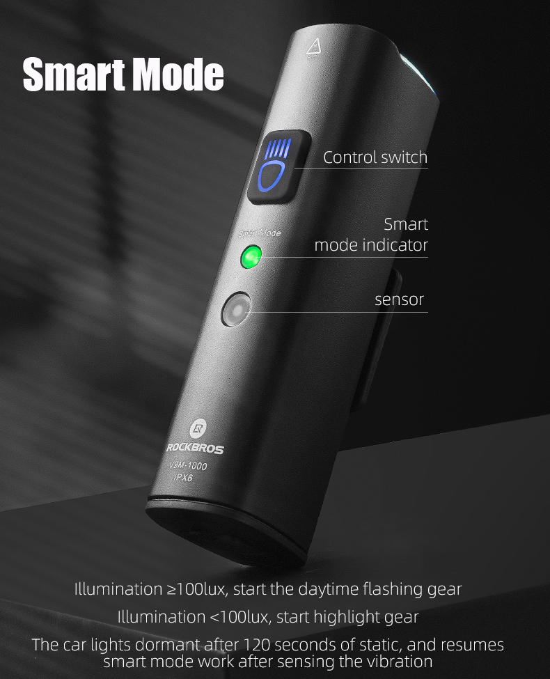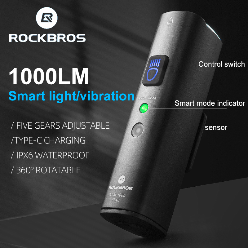 ROCKBROS Aluminum shell Bike light 1000LM Smart Light USB Rechargeable LED Light High quality Flashlight Cycling Headlight Front Light Waterproof light