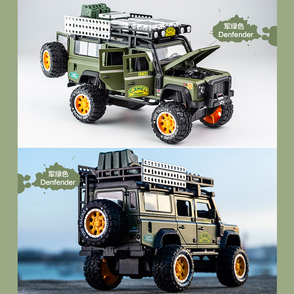 LEO 1:28 Land Rover Defender Camel trophy alloy model car big car monster truck toy for kids boys