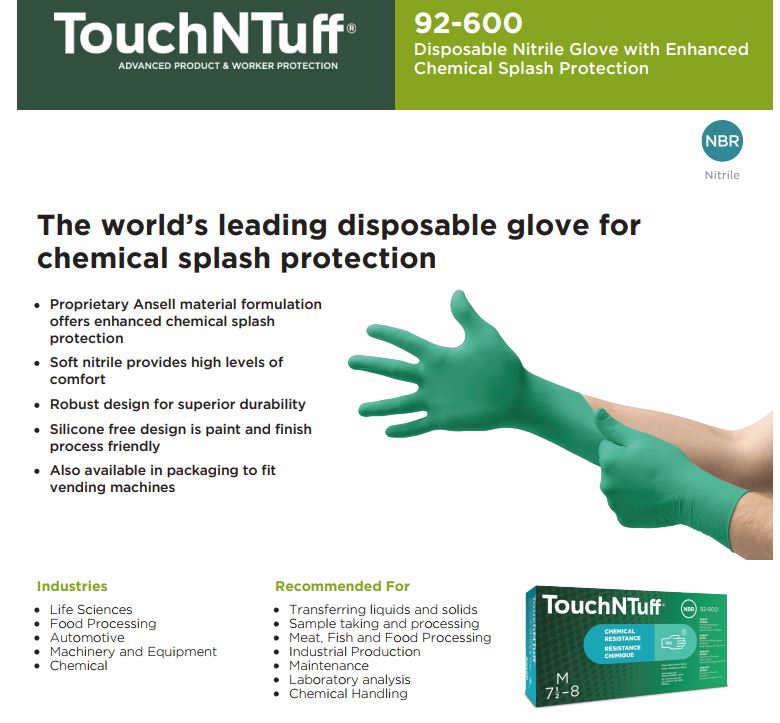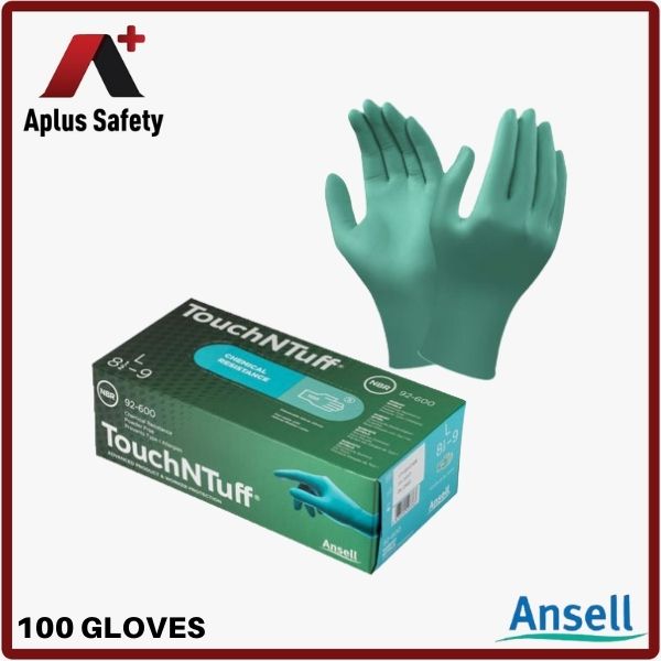 ANSELL Touch N Tuff 92-600 Disposable Nitrile Glove, 100pcs/box (Enhanced Chemical Splash Protection / Powder Free)