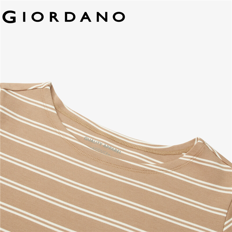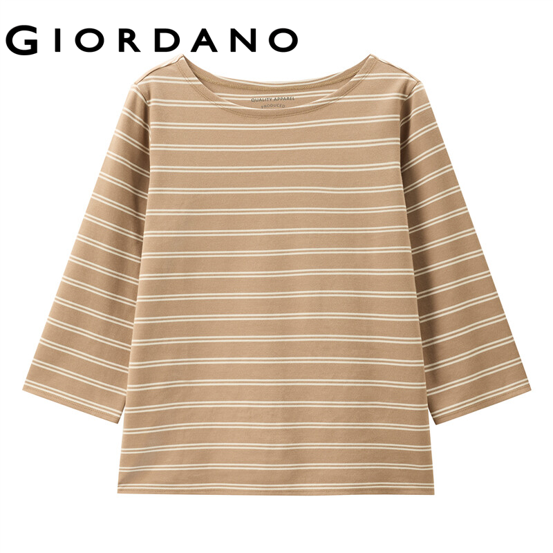 GIORDANO Women T-Shirts Simple Solid Color Comfy Smooth Boat Neck T-Shirts 3/4 Sleeves Stripe Design Solid Color Tee 05321629