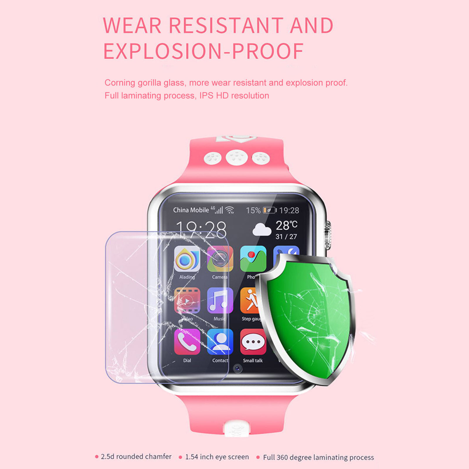 [Exquisite Workmanship] Made of corning gorilla glass with full 360°laminating process, wear resistant and explosion-proof. 1.54-inch IPS screen with 240*240 resolution shows vivid picture details, bringing HD colorful viewing experience.