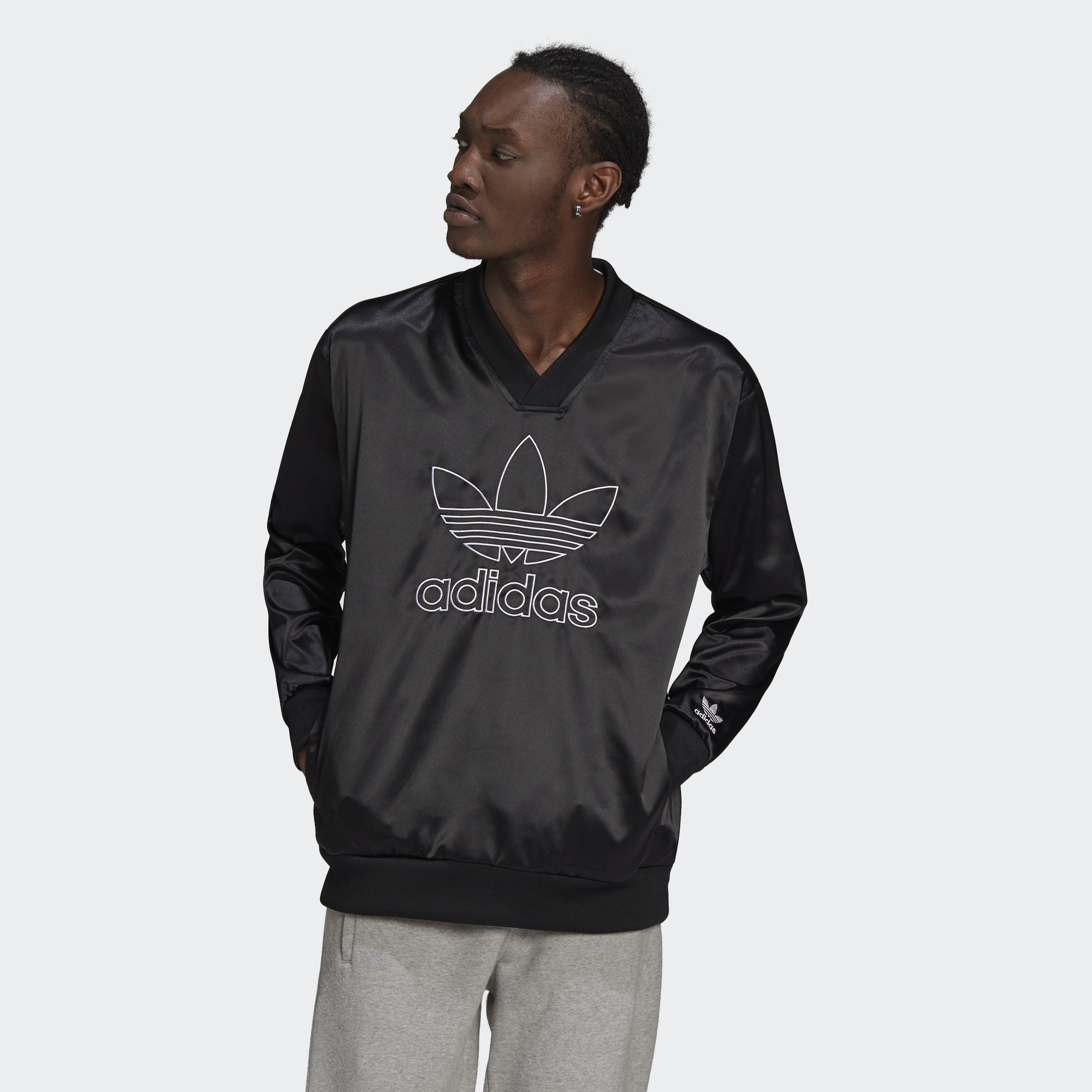 No need to hide your inspiration. Let your love of adidas style shine in this satin jersey. The football-inspired shape would be right at home under the stadium lights. But smooth, shiny fabric has other plans. Lavish vacays and nights out dancing? So much yes. This product is made with Primegreen, a series of high-performance recycled materials.