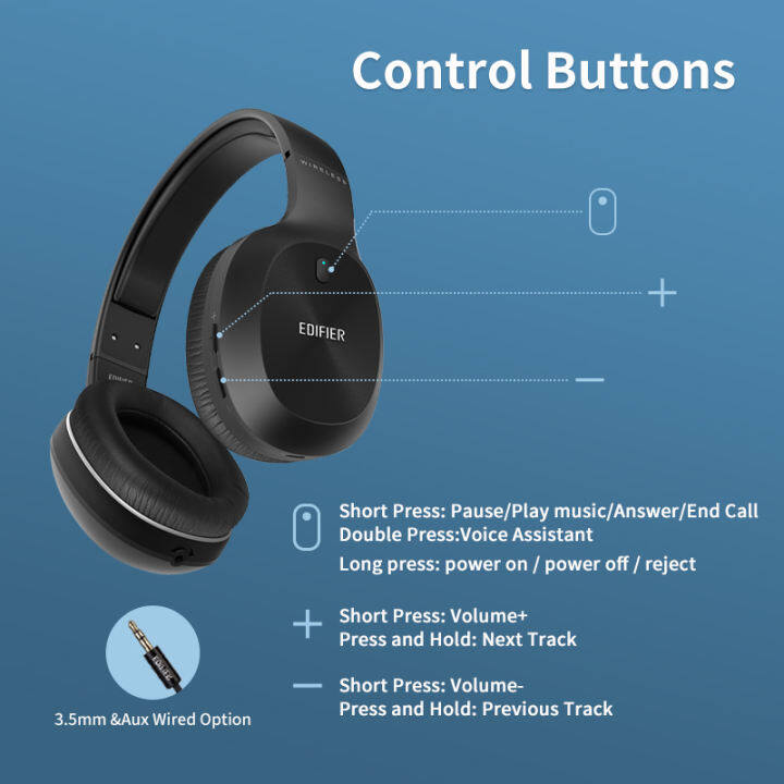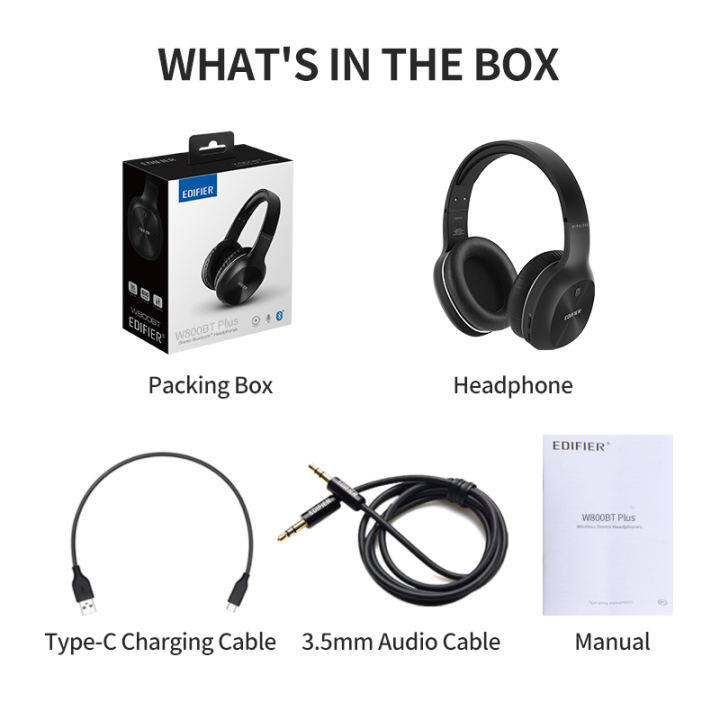 Edifier W800BT Plus Wireless Over-Ear Noise Cancelling Headphones Bluetooth V5.1 40mm Drivers Up to 55 Hours Stereo Headphones Supports AptX
