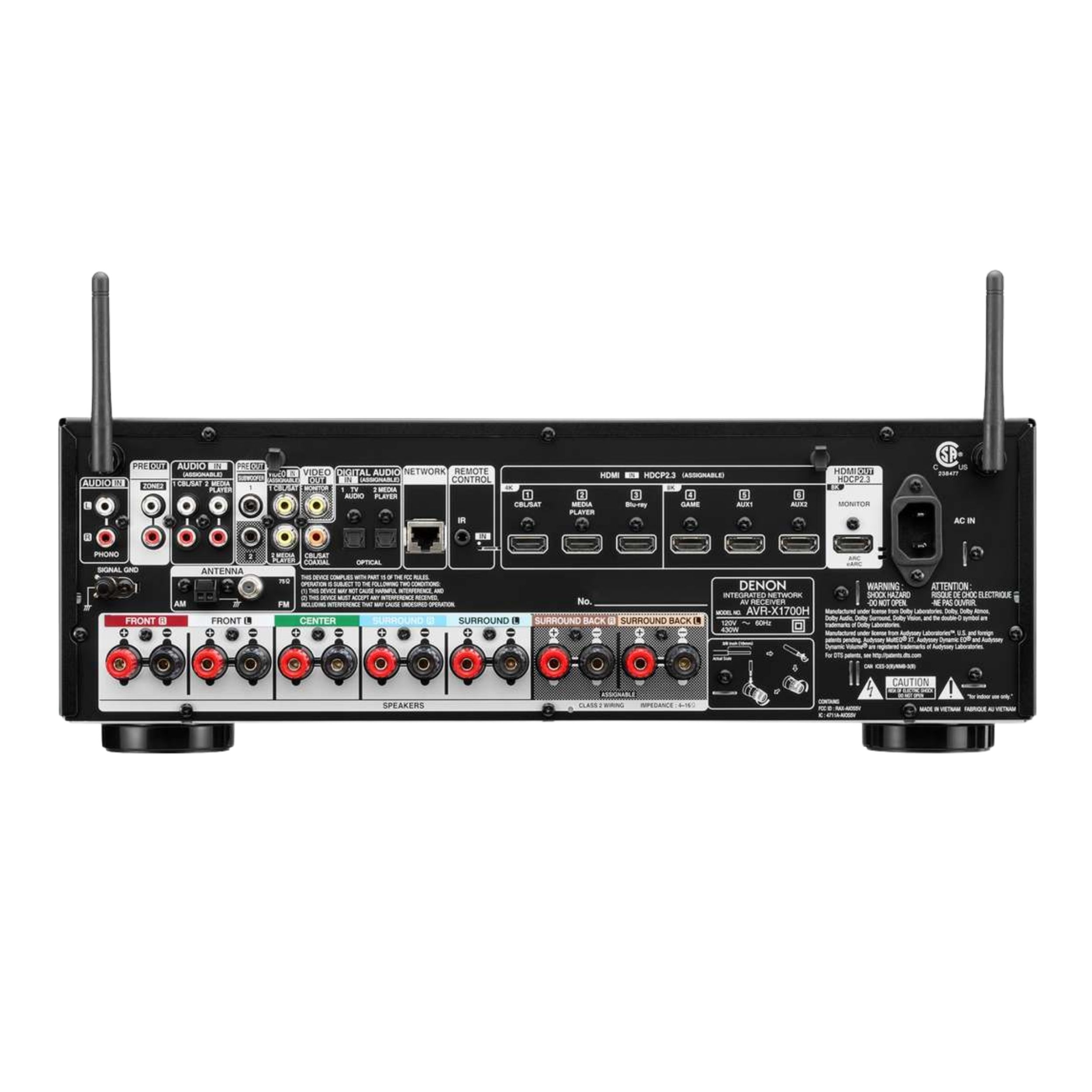 Denon AVR-X1700H 7.2 Ch. 8K AV Receiver w/ 3D Audio, Voice Control & HEOS Built in - AV One Authorized Dealer/Official Product/Warranty