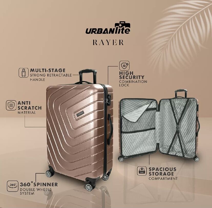 [SG Ready Stock] URBANlite Rayer 20/24/28 inch 360° Spinner 8 Wheels ABS Hard Case Luggage Delivery Within 3 Days By Universal Traveller