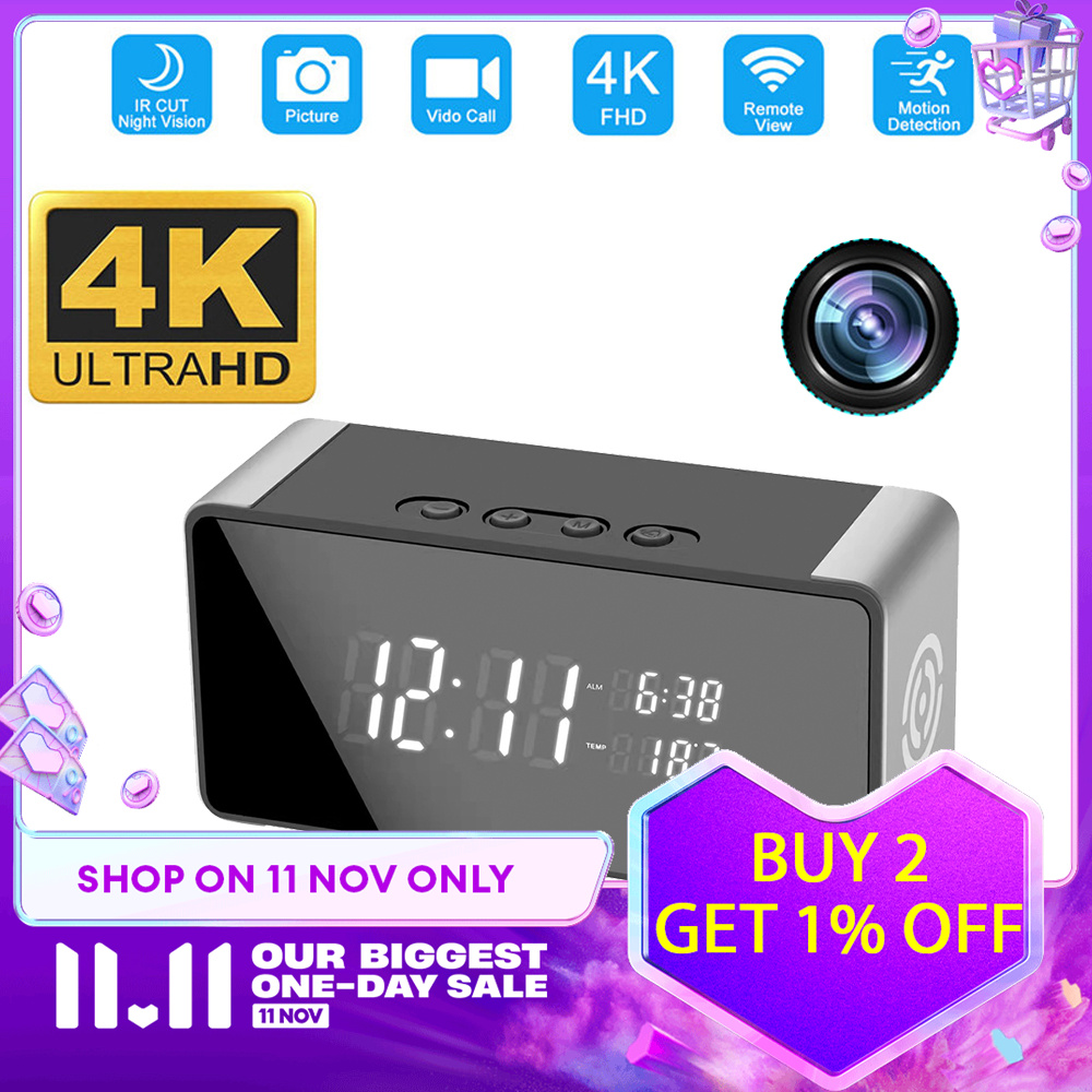 Original Wifi Electronic Clock Camera 4K/1080P Hidden Wireless Micro Camera Infrared Night Vision Digital Clock Remote Monitoring Motion Detection 1600mAh Monitoring Camera Support 128G TF Card