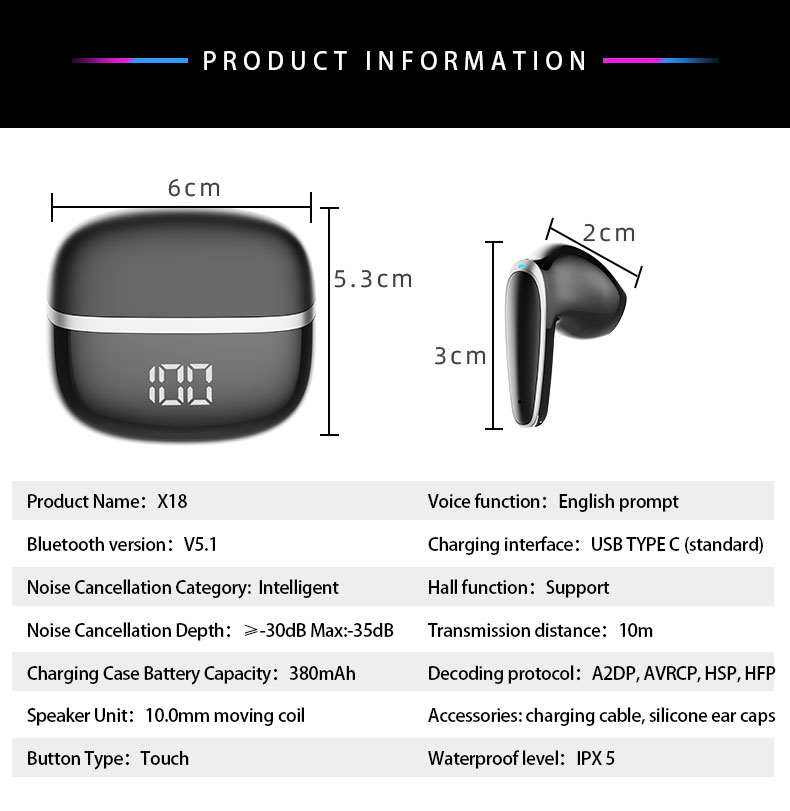 【Hot 2022 NEW】COTIN X19 Bluetooth Headphones Touch Control ture Wireless Earbuds Built-in Microphone Sport Earphones Game Headset high-Grade in-Ear Headset for Android iOS TV Pad Gaming Computer Lapto