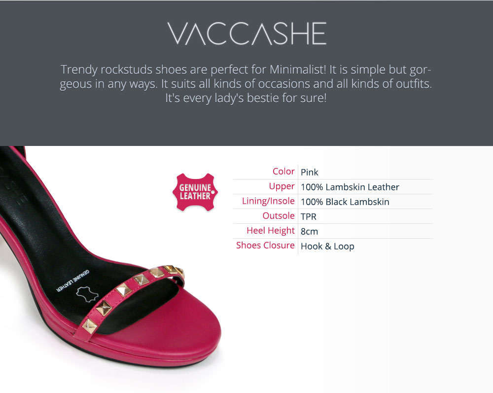 VACCASHE - PINK SPARK - GENUINE LEATHER STRAPPY HEELED SANDALS ANKLE STRAPS WITH STUDS