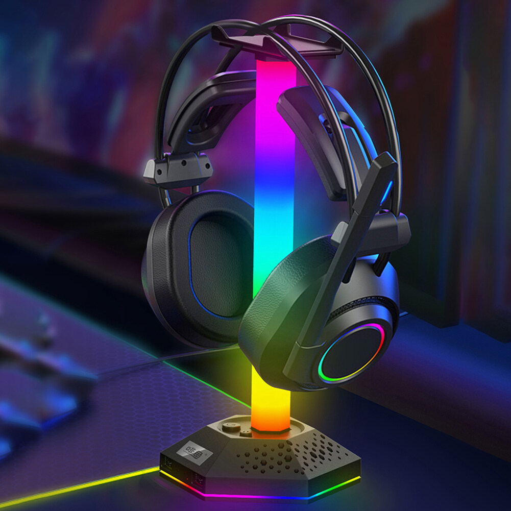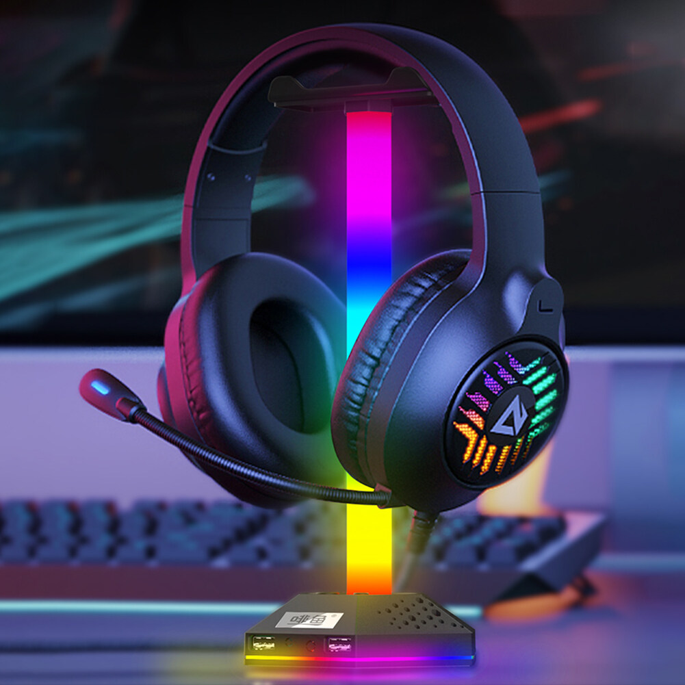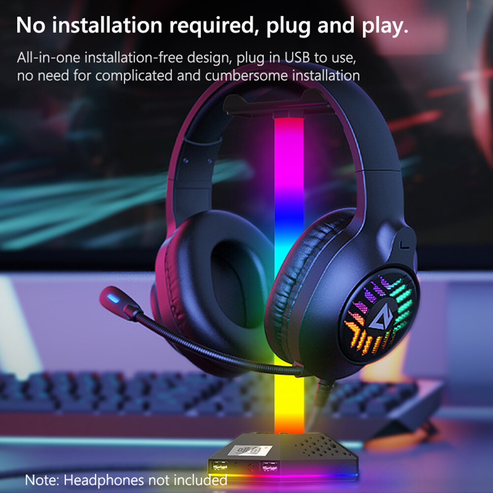 RGB Gaming Headphone Display Stand 12 Light-Mode Headset Holder 3.5mm Audio