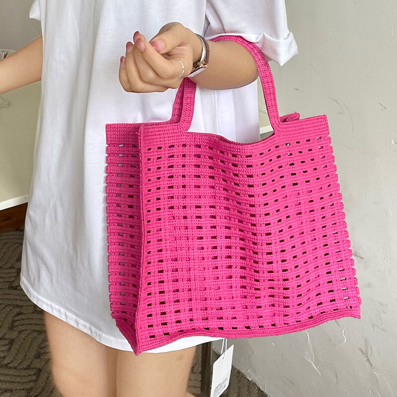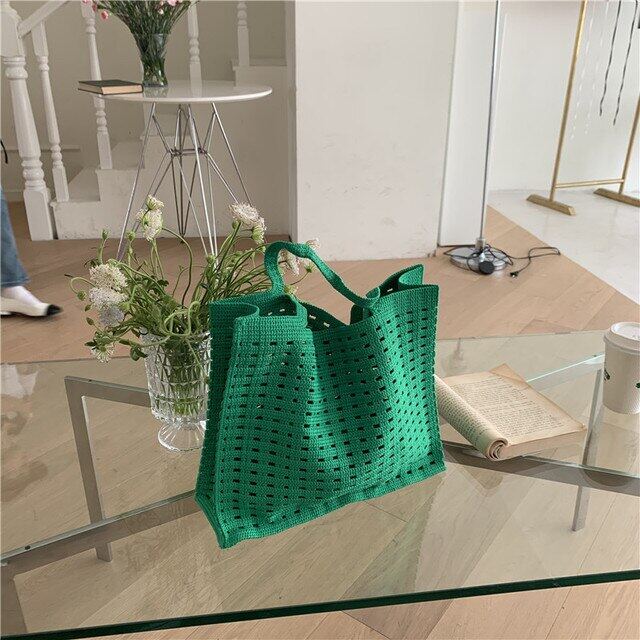 Casual Hollow Knitted Large Tote Bag Crochet Women Handbags Handmade Woven Summer Beach Bags Big Shopper Purses 2022 Female Bag