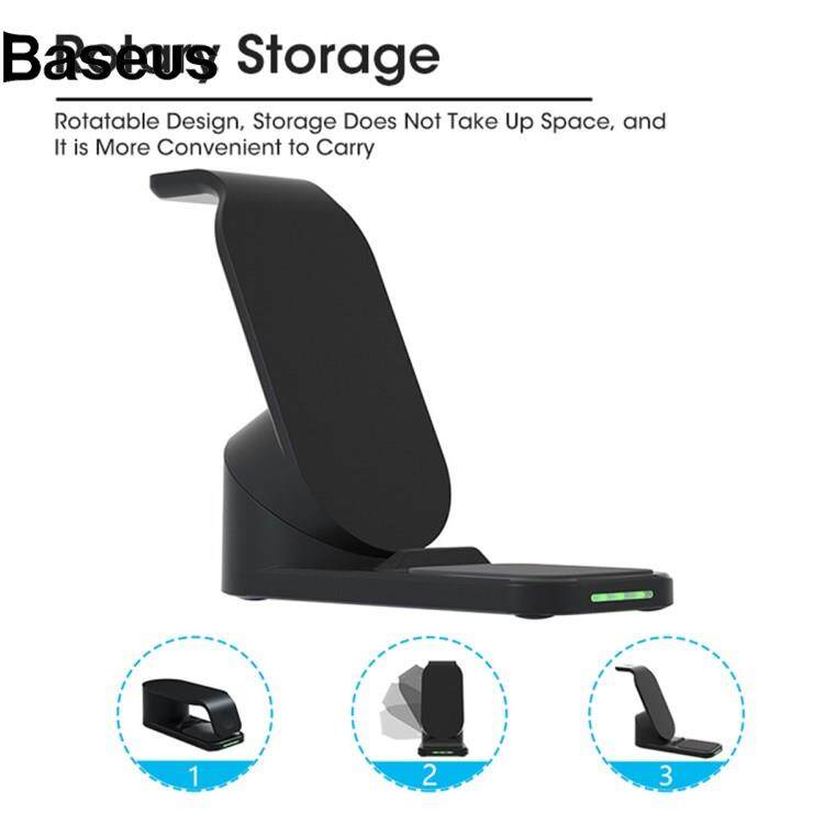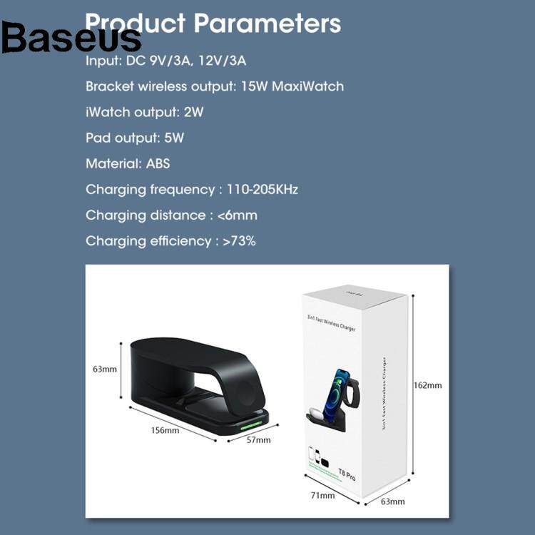 Baseus T8 Pro 3 in 1 Desktop Wireless Charger for iPhone / iWatch / AirPods 15W Max Rotatable Charging Dock Stand