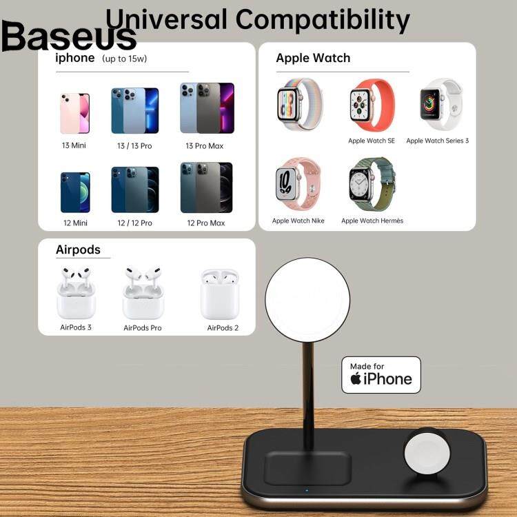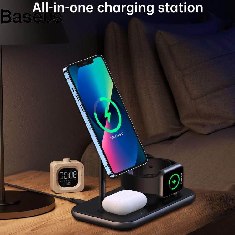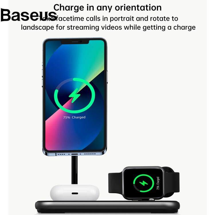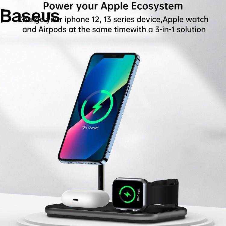 Baseus JJT-980 Desktop Charging Stand 3 in 1 Detachable Magnetic Wireless Charger for iPhone / Apple Watch / Earphones