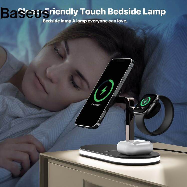 Baseus UD23 3 in 1 Magnetic Charging Station 15W Max Wireless Charger with Dimmable Bedside Lamp for Mobile Phone / Smart Watch / Earphones