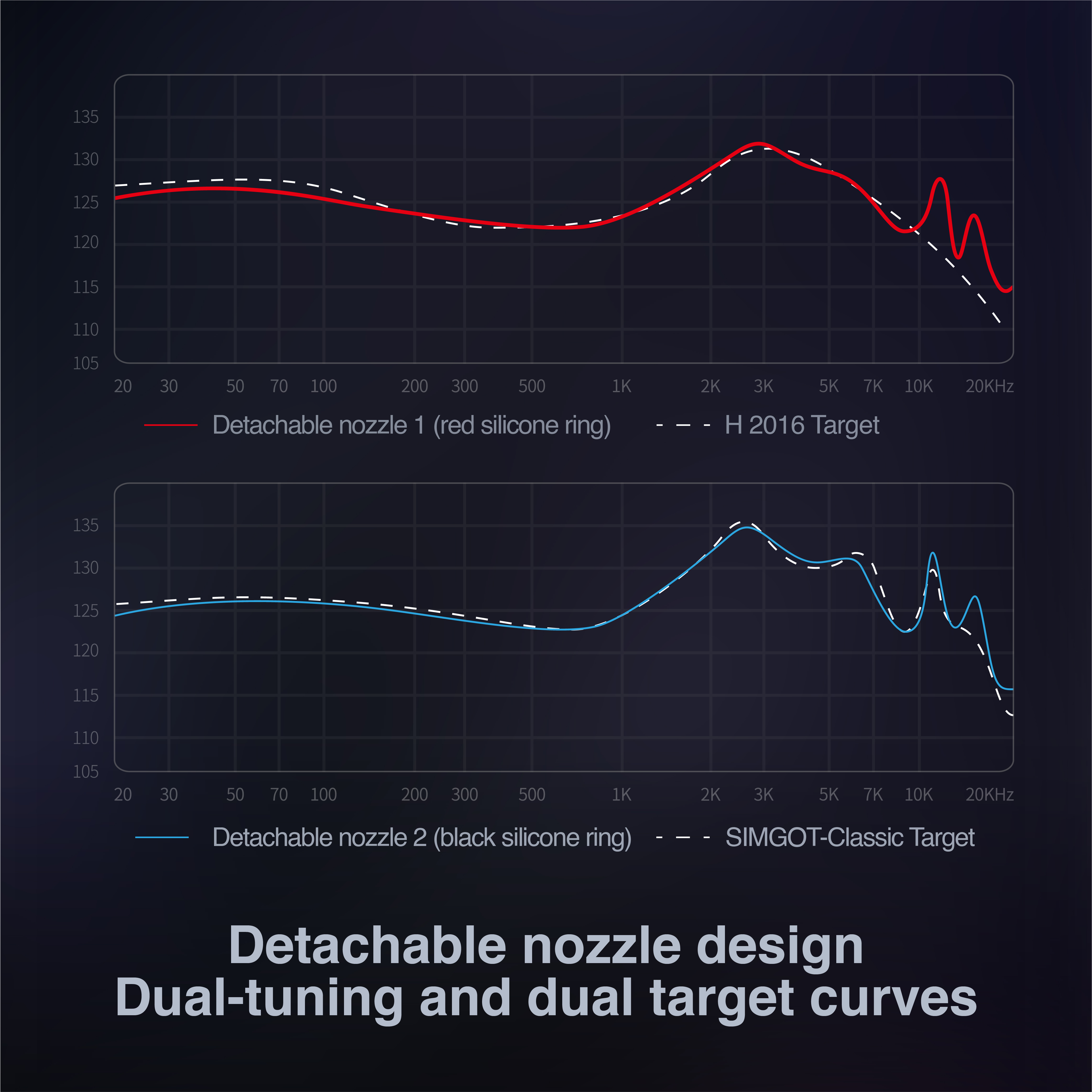 - ♫【Detachable Nozzle Design & Two Target Curves】By quickly disassembling and installing the nozzles of different tuning cloth systems, the user can obtain two different curves of high completion degree. When the filter is blocked after a long time wearing, users can replace the filter themselves, which can extend the service life of the product and increase the scope of adaptation.