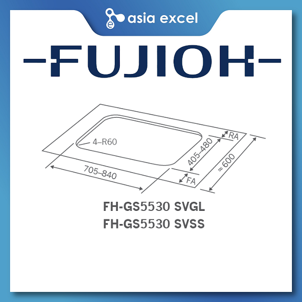 FUJIOH FH-GS5530 SVSS 3 BURNER STAINLESS STEEL GAS HOB WITH SAFETY DEVICE