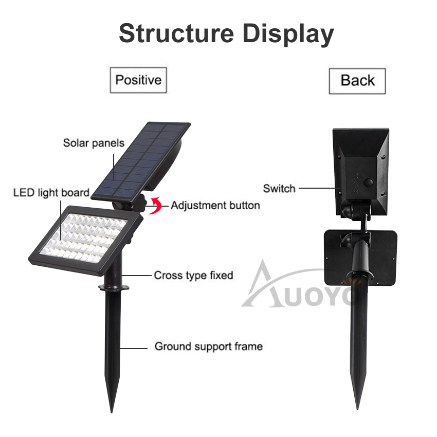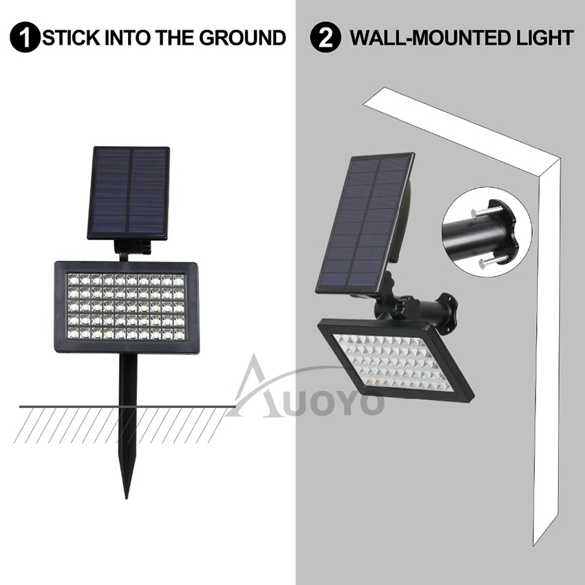 Auoyo Solar Light Outdoor Garden Lights 50 LED Spotlights Lawn Lamp Balcony Light IP65 Waterproof Security Torch Light Automatic On/Off for Garden Yard Path
