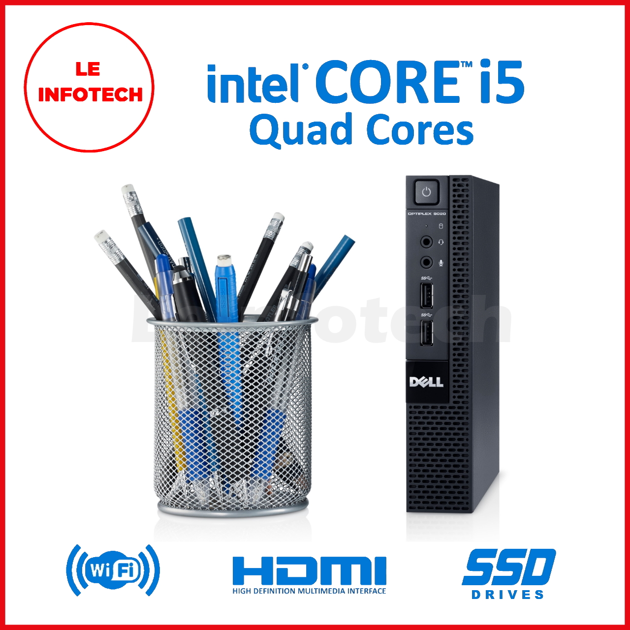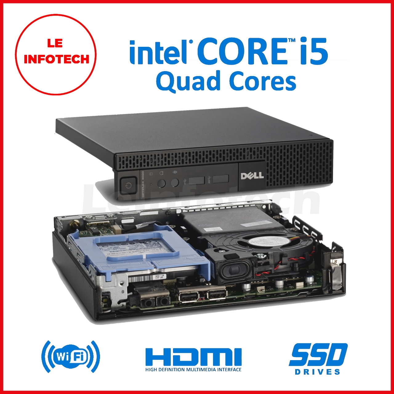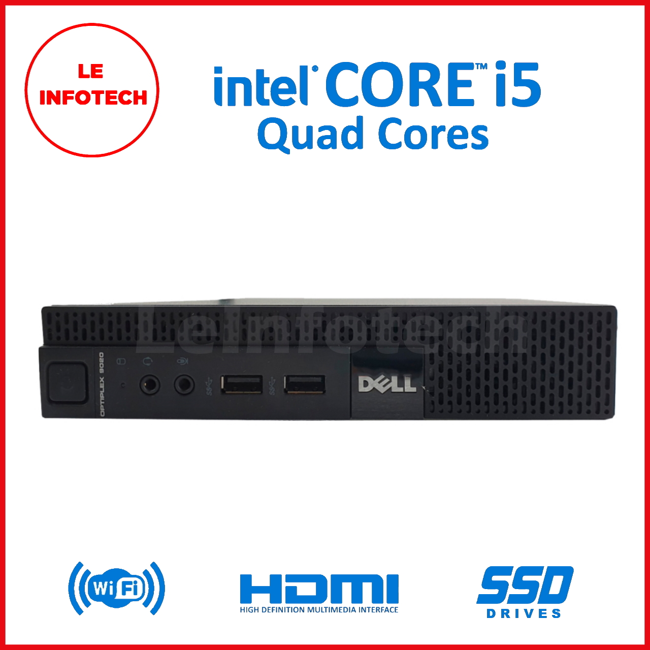 Dell Optiplex 3020 Micro Desktop Quad Core Intel i5-4590T 8/16 GB RAM New 256/512 GB SSD Win10 Pro Used Free USB+WiFi DisplayPort to HDMI One month warranty - LeInfotech