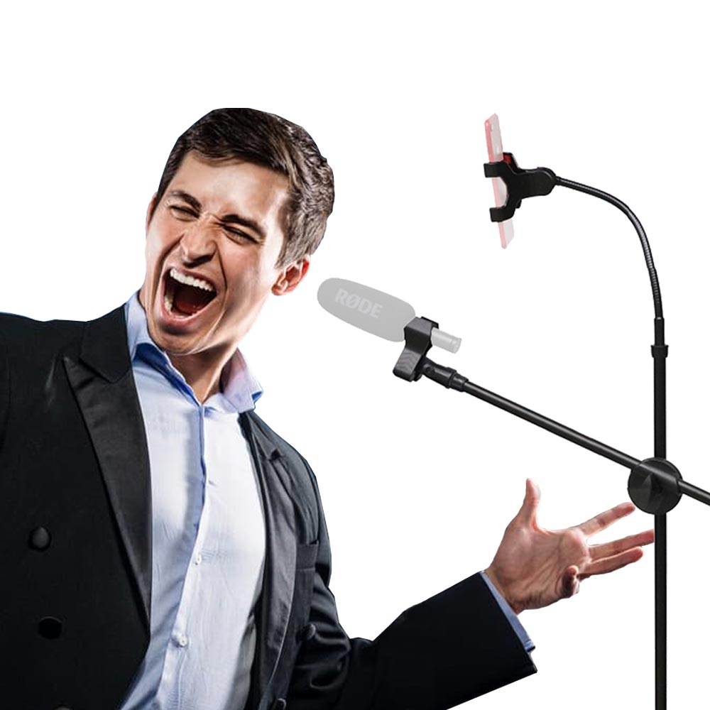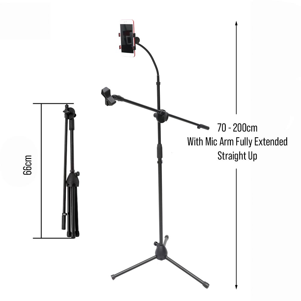 eDSLRs Professional Microphones Swing Boom Floor Stand Mic Stand With Mobile Phone Holder TikTok Live Stream Facebook Live
